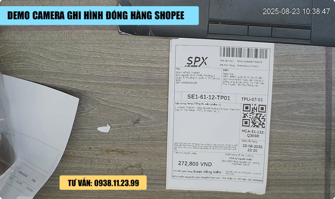 • Camera quan sát độ phân giải cao: Ghi rõ thao tác tay, sản phẩm và mã đơn.